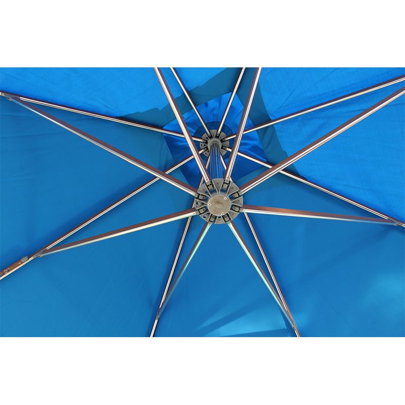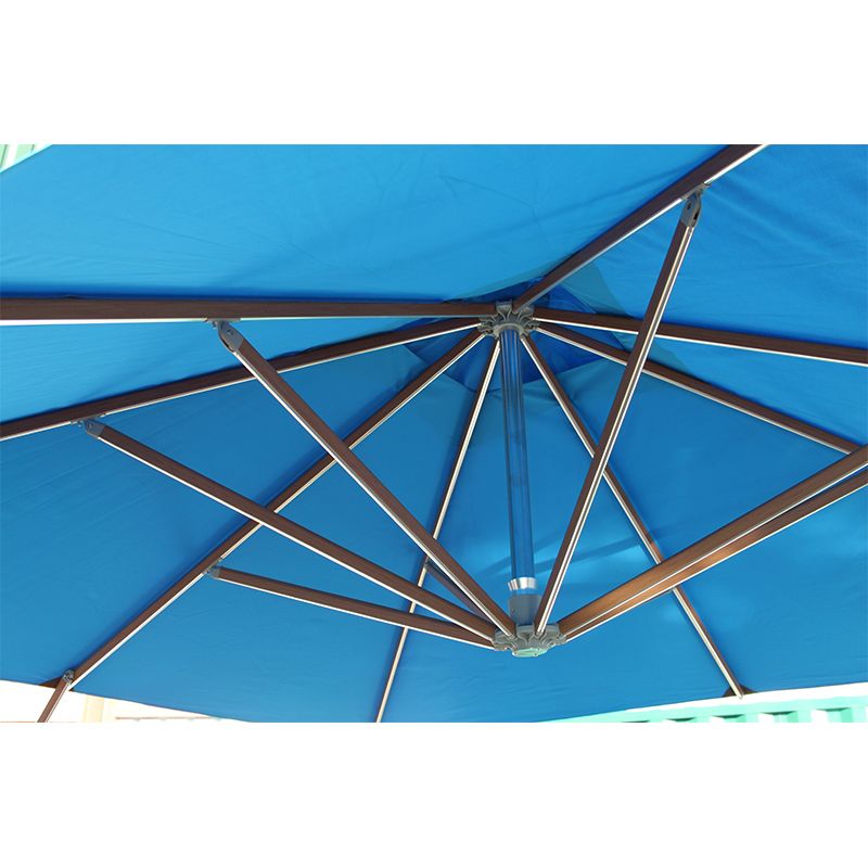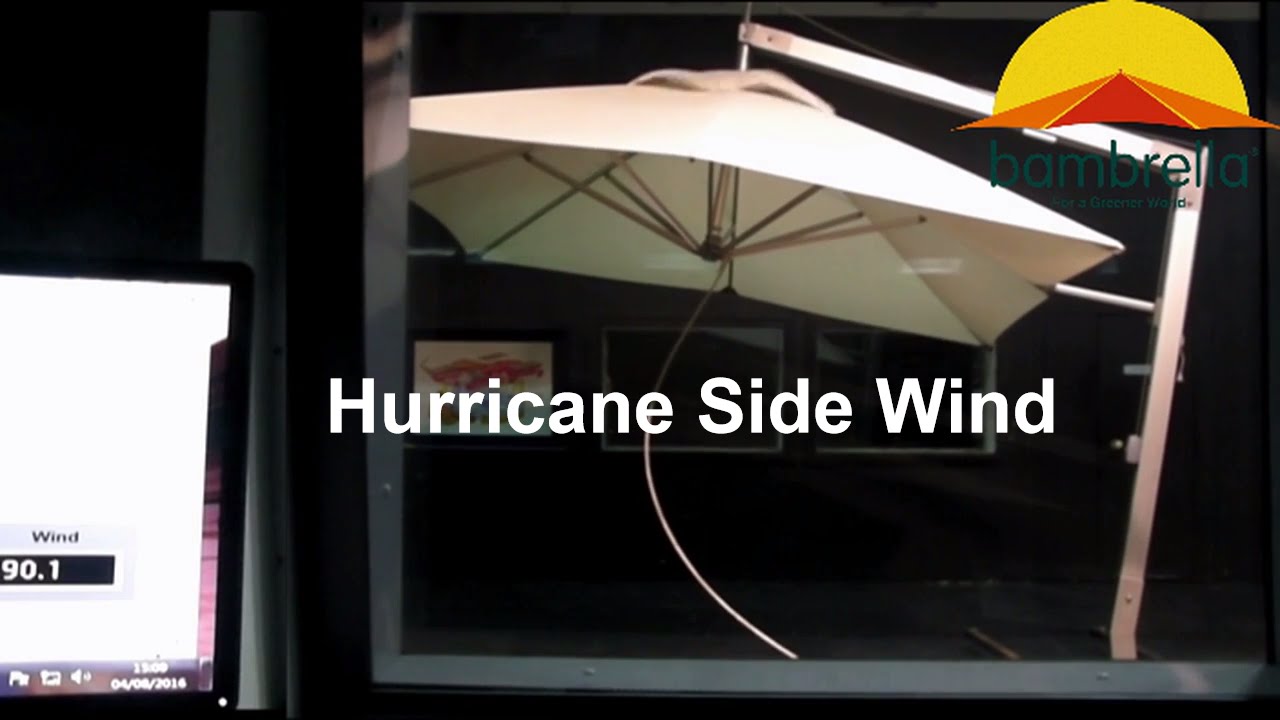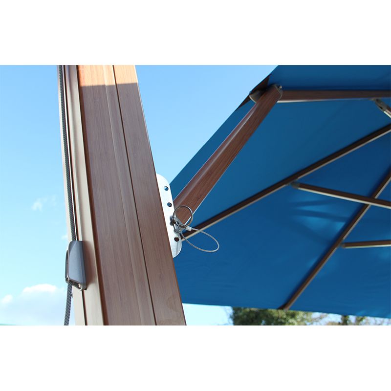 (*) This cantilever parasol was wind tunnel tested, resulting in a wind speed resistance of 125 km/h. Note that this is a controlled environment with the parasol bolted to the ground, and we advise all of our clients to keep the parasol collapsed and in a protective cover when not in use.