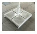You can add concrete weights ( 4 x 30kg ) to the metallic frame and wheels to move it where needed.