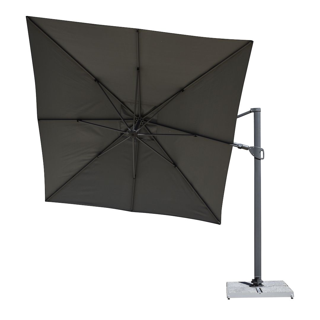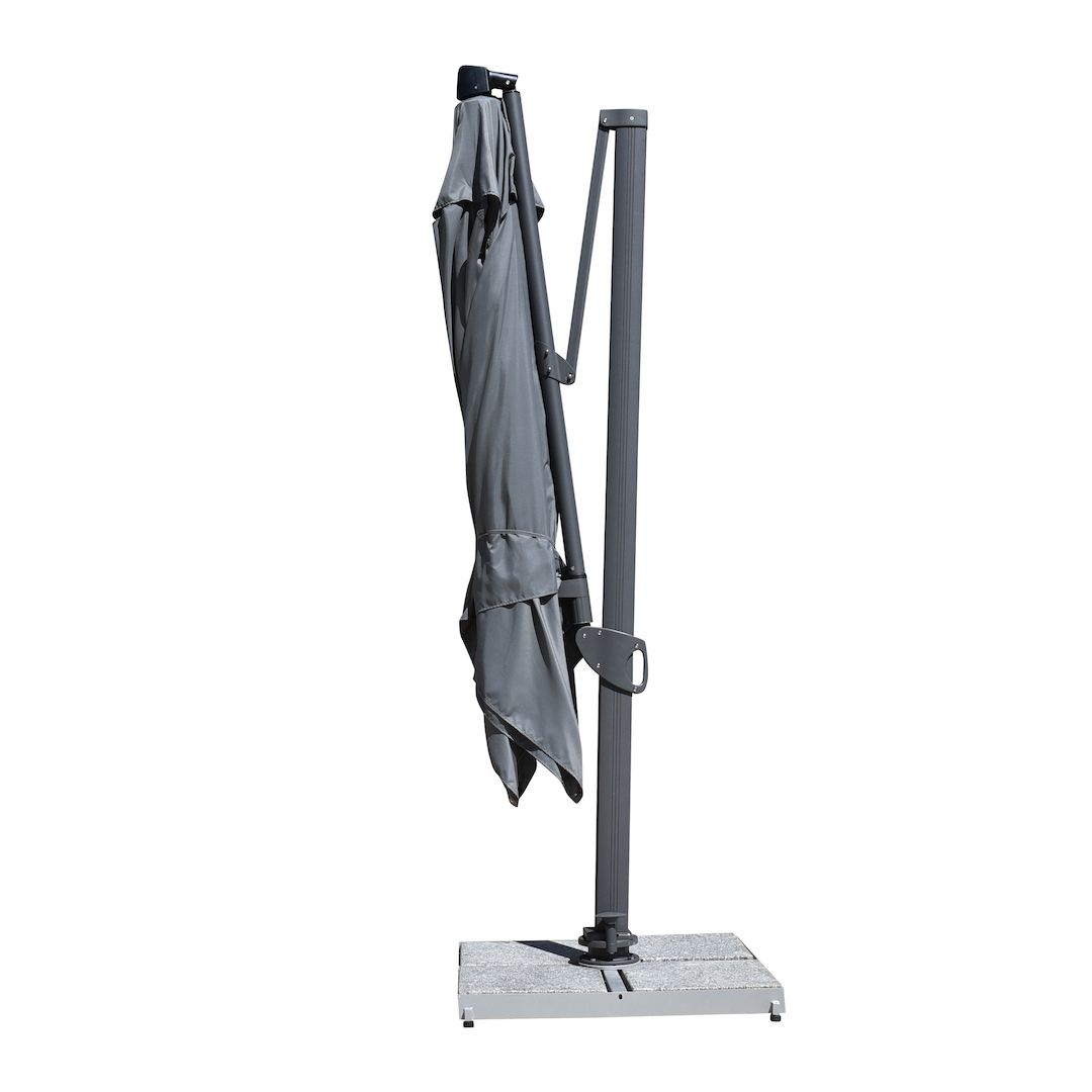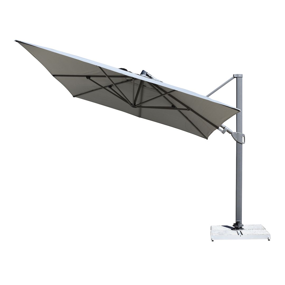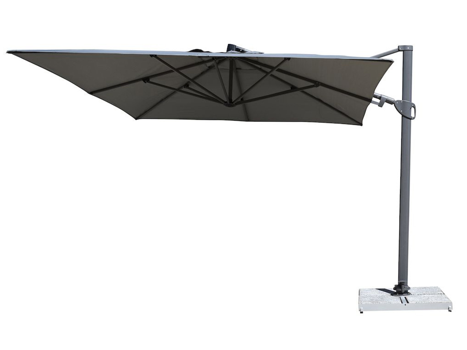 This cantilever parasol is operated by a vertical handle for setting up the position of the canopy and a crank that allows unfolding the canopy with ease. You don’t need to much strength and It can be operated even by a child. If you wish change its location on the terrace or patio, just make sure to opt for a base with wheels.