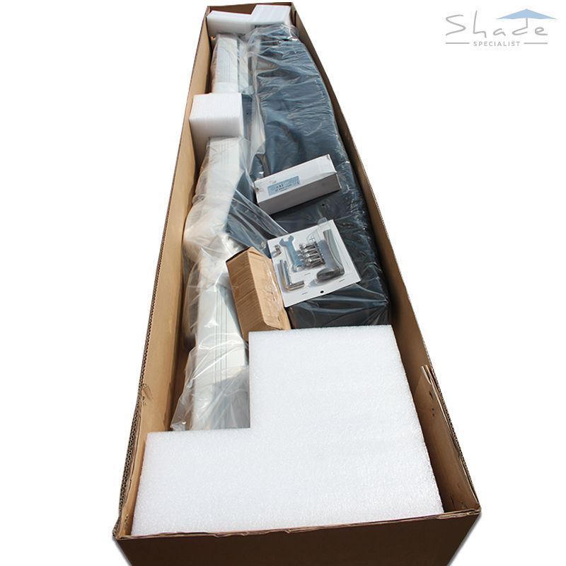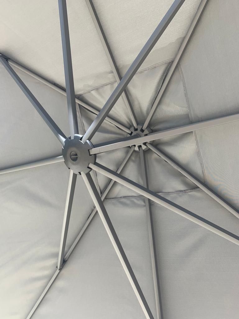 I bought this 3m cantilever from Shade Specialists and was happy about the condition and the delivery time. Further accessories such as the Bluetooth speaker and the protective cover make this parasol a great deal to buy!