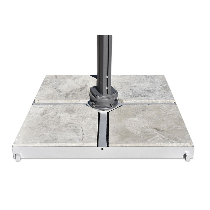 There are 2 types of anchoring available for parasols: permanent and non-permanent. For each one there are 2 choices possible, allowing to rotate the cantilever to a 360-degree using a pedal.